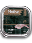 NATIVE Rabbit 150 гПовнораціонний вологий корм для дорослих собак з м’ясом кроликаАртикул: 80105NATIVE Rabbit — це супер преміум вологий корм для дорослих собак, виготовлений на основі м’яса кролика. Формула містить 65% м’яса та м’ясних інгредієнтів, що забезпечує високий рівень тваринного білка та відмінну поїдання.М’ясо кролика (10%) є дієтичним, легко засвоюється та підходить собакам із чутливим травленням. Корм збагачений вітамінами та мінералами для підтримки імунітету, здорової шкіри та блискучої шерсті.✔ 65% м’ясних інгредієнтів✔ 10% кролика✔ Без глютену (Grain Free)✔ Високий вміст білка✔ Повнораціонне харчування для дорослих собак✔ Зручна порція 150 г________________________________________Склад:М’ясо та м’ясні субпродукти 65% (кролик 10%), мінерали, соняшникова олія 0,4%.________________________________________Аналітичні показники:Сирий білок — 10,5%Сирий жир — 7%Сира зола — 2,5%Клітковина — 0,3%Вологість — 77%________________________________________Харчові добавки (на 1 кг):Вітамін D3 — 200 МОЦинк (Zn) — 25 мгМарганець (Mn) — 1,4 мг________________________________________Рекомендації щодо годування:Добова норма залежить від ваги собаки:2–4 кг — 190–320 г5–10 кг — 380–640 г12–19 кг — 750–1050 гПісля відкриття зберігати в холодильнику та використати протягом 3 днів.